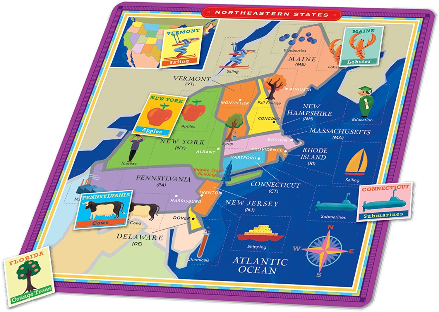 - Um jogo divertido e educativo para introduzir as crianças à geografia dos Estados Unidos