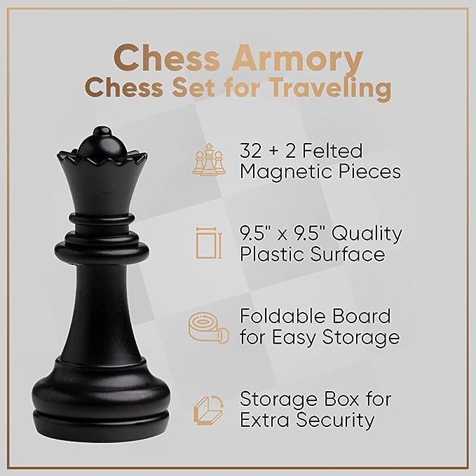 - ♕ PARA JOGADORES NOVOS E EXPERIENTES: Surpreenda seus amigos com conjuntos de xadrez para adultos com armazenamento ou use como tabuleiro de xadrez portátil para crianças para futuras gerações de jogadores. Excelente escolha para jogos de viagem para crianças de 8 a 12 anos também.