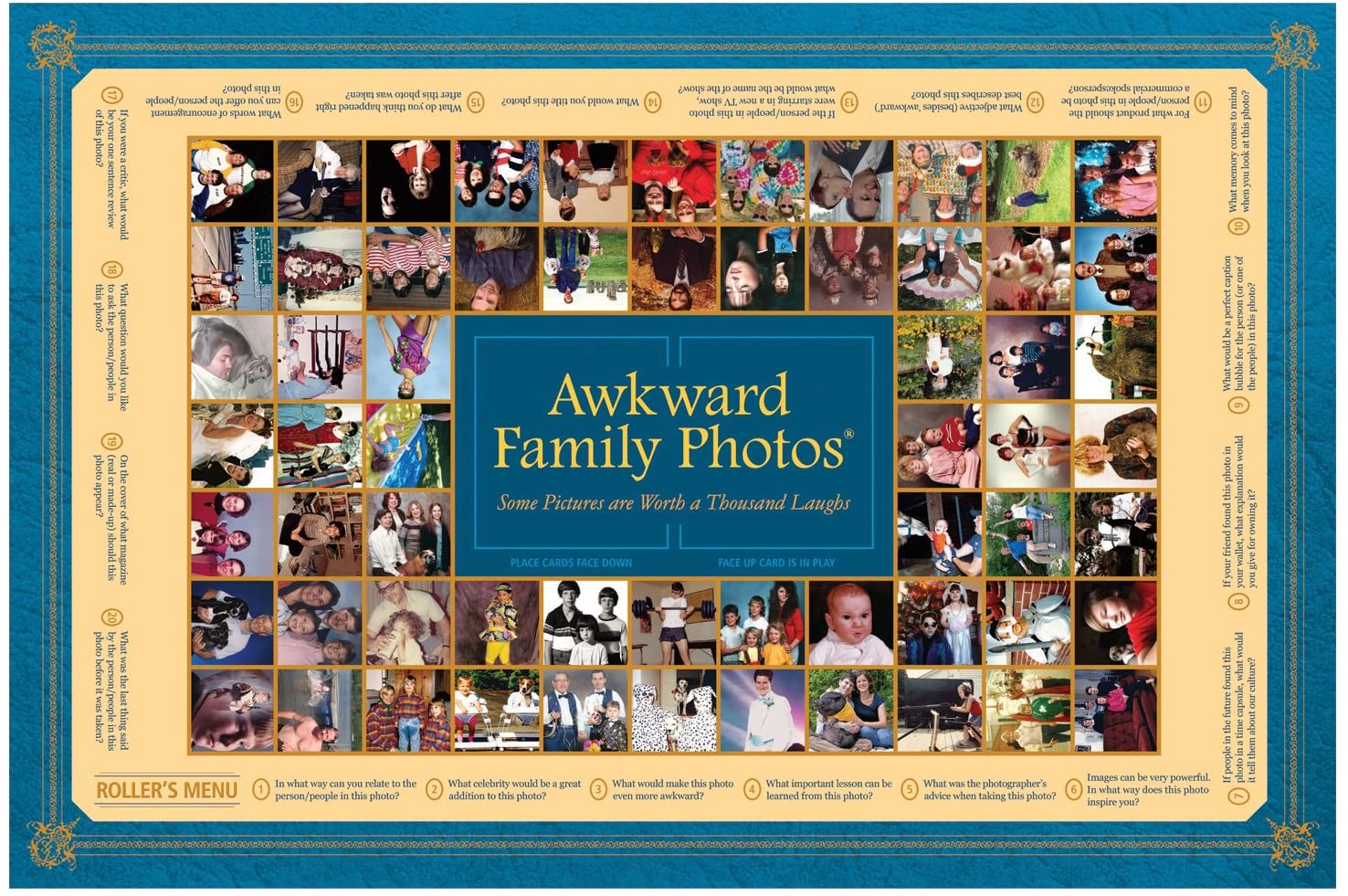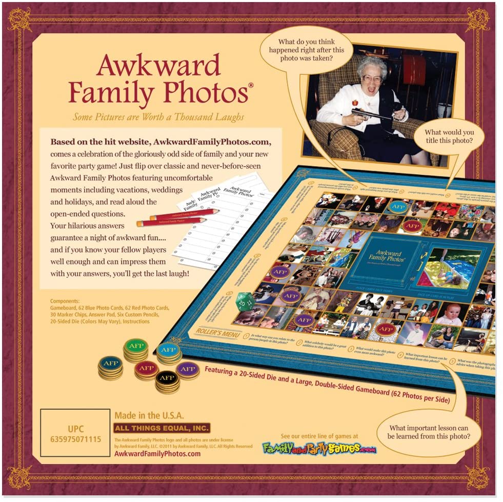 - Perguntas criativas combinam com fotos clássicas e nunca antes vistas da família Awkward para uma noite de jogo hilária!